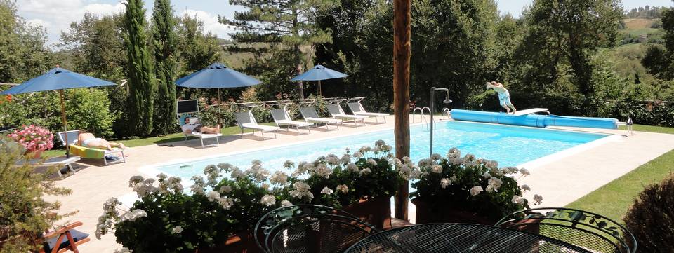 All six bedrooms have wonderful views over the surrounding hillsides, comfortable beds and plenty of storage for your holiday wardrobe. The five bathrooms (four of them en suite) are light and airy, and the kitchen is comprehensively equipped so that keen cooks can make the most of the delicious local produce. The sitting rooms have log-burning stoves for when the weather is cooler, but in summer you will probably be eating every meal either under the portico which runs along one side of the house, or on the wisteria-covered terrace looking towards the little hamlet of Prato in the distance.