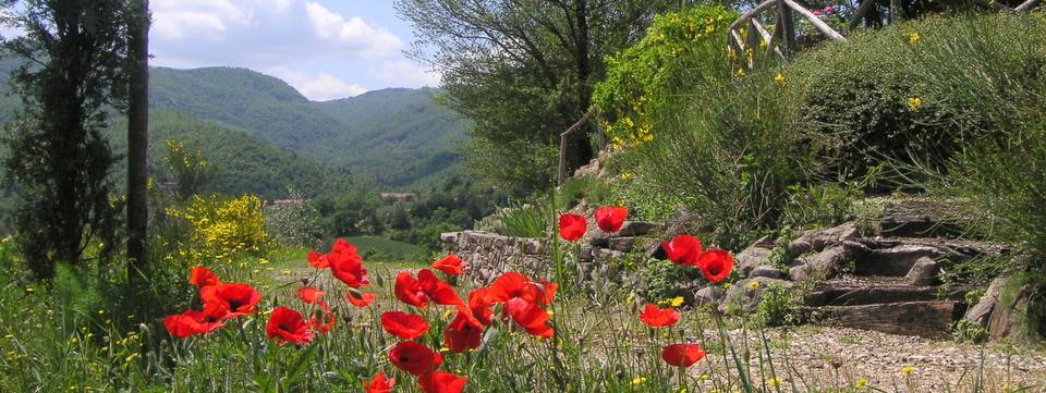 A beautiful garden with olives, vines and fruit trees surrounds Belvedere on all sides.  The areas around the house, tennis court and pool are planted with a wide variety of flowering and scented plants, including herbs for the kitchen: